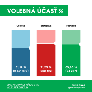 Keď to rozmeníme na drobné, volebná účasť v najľudnatejšej mestskej časti Bratislava-Petržalka sa v rámci okresu Bratislava V vyšplhala na 69,26 %. V porovnaní s prvým kolom je to o takmer 10 % viac (59,66 %).