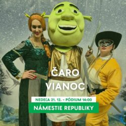 Či ste veľkí a či malí, príďte sa presvedčiť na Námestie Republiky, kde vám Fiona porozpráva príbeh o tomto populárnom zelenom zlobrovi. A nebude chýbať ani prešibaný Kocúr v čižmách.