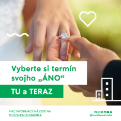 Vyberte si niektorý z voľných termínov na zásadné rozhodnutie a povedzte si svoje áno práve tento rok. Stačí, ak prídete osobne na Miestny úrad Petržalka – kolegyne z matriky vám so žiadosťou ochotne pomôžu a prevedú vás celým procesom.