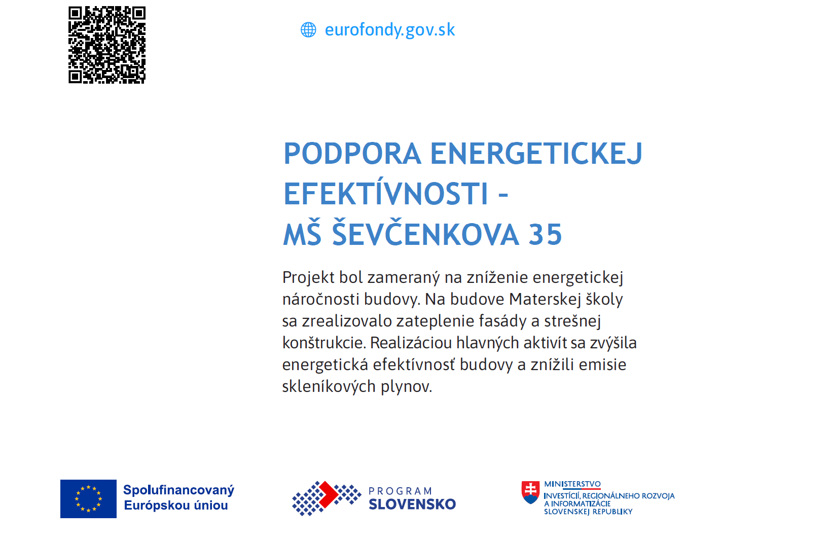 Podpora energetickej efektívnosti – MŠ Ševčenkova 35